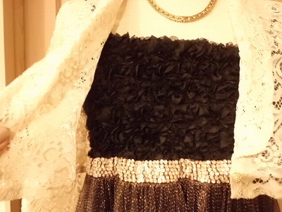 チュールにキラキラのラメをちりばめて、ウエストにはきらきらのスパンコール!