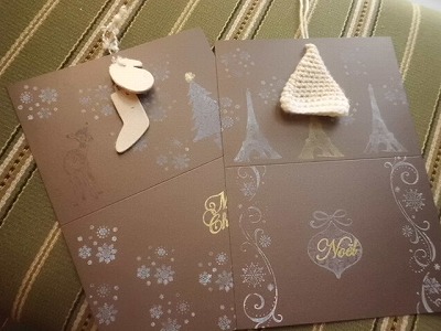 カードに穴を開けてオーナメントを通すので、飾ってカワイイクリスマスカードになります♪