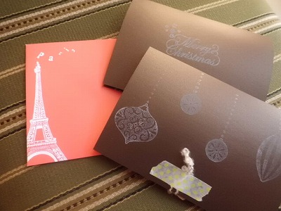 封筒はフランス製の、クリスマスらしいレッドにエッフェル塔柄のものをご用意しました。