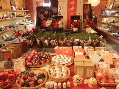 お正月用の和食器や、花飾りなど、