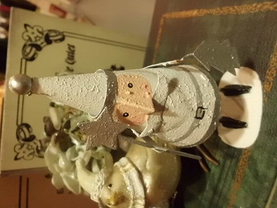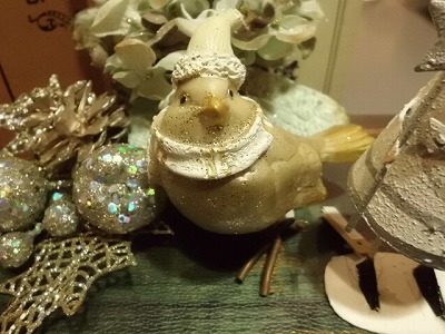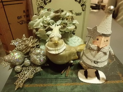 淡いイエローゴールドの鳥とホワイトブリキのサンタさんです♪