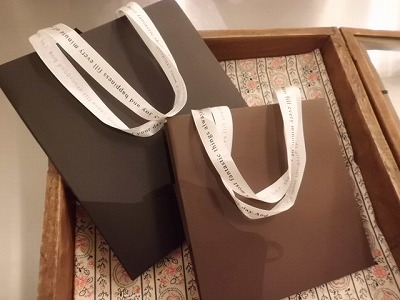 贈り物を入れるお渡し用の手さげバッグ。こちらはシンプルでシックなノワール(ブラック)とブラン(ブラウン)。