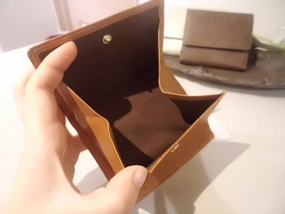 こちらの二つ折り財布はとってもコンパクトですが、小銭入れの部分が大きく開いてボックスになります。