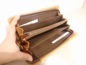 私自身も使っていますが、長財布はこんなに大きく開いて中の物を見渡せます。