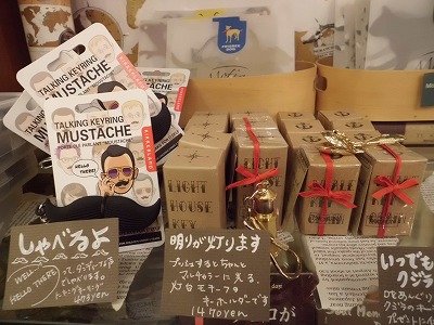押すとちゃんと光る、灯台モチーフのキーホルダー。¥1470