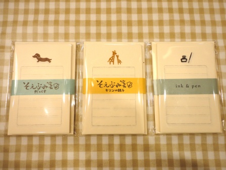 中でも売れ筋はこの3種★真ん中のキリンの親子は私の母も買って帰りました☆* ちょっと一言添える時にちょうど良いサイズです(*^^)v 私もこのそえぶみ箋をたくさん買って、卒業式で後輩たちへ渡す予定です(*^_^*)