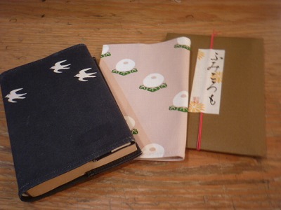 こちらがブックカバー「ふみころも」の中でも人気商品の燕と、新商品の万寿菊です。