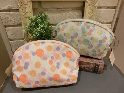 左:舟形のポーチ:¥2940 正面:ティッシュポーチ:¥2625 右:フリルポーチ¥3780
