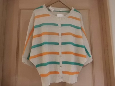 マルチカラーのボーダーが可愛いドルマンカーディガン。