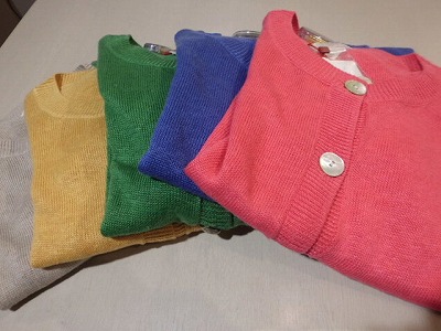 こちらは毎年好評で、イノブンの定番ポンデシャロンのカーディガンです。