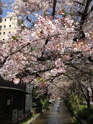 今日も出勤前に少し遠回りして、高瀬川沿いの桜道を通ってきました。
