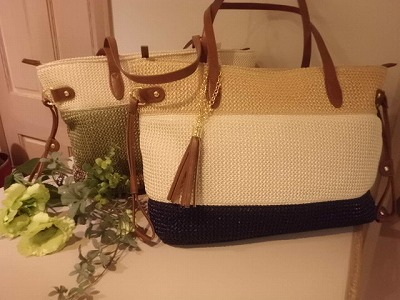 今日ご紹介したバッグは夏素材のバッグですので、これからの季節薄手のストールや帽子とも相性抜群です