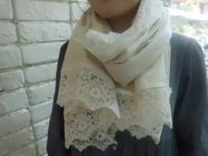 ナチュラルな印象の四面レースのUVストール、実は三通りの使い回しができるんです!¥3990