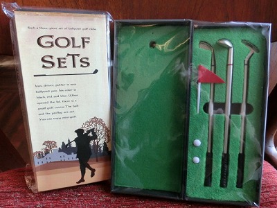 こちらはフタを裏返すとミニゴルフが楽しめる遊び心満点な、ボールペンセットです。