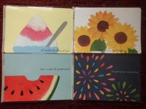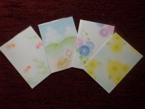こちらは日本の夏の風景が描かれたポストカード。涼しげな水彩画で夏のお便りにピッタリです。こちらはそれぞれの柄3枚入りで¥158です。