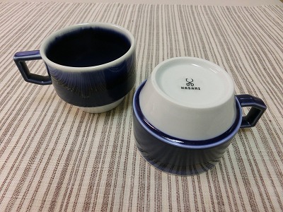 逆さにすると雪をまとった富士山 波佐見焼のスタッキングマグ¥2100 です。