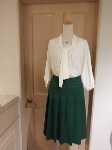 縦の緩やかなプリーツとウエストラインの締まったデザイインで女性には
