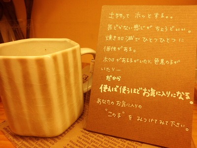 さて今日は、そんなあなただけのお気に入りマグになってくれるであろう土物のマグカップをご紹介します。