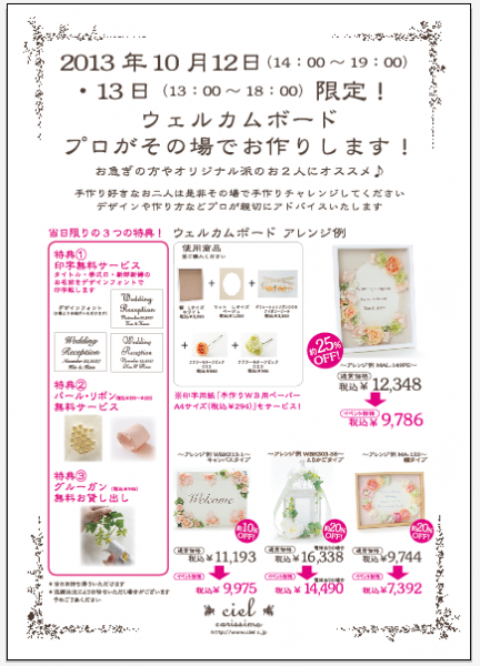 オリジナルウェルカムボード オーダー会のイベントを行います。