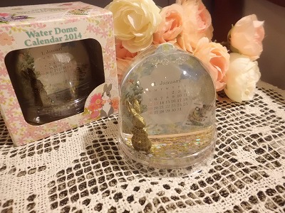 動かすとキラキラと小さな星が浮かぶウォータードームの中央に隙間がありカレンダーが入っていてます。