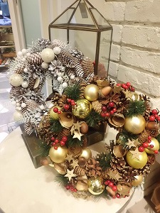 本物の松ぼっくり等が使用されていてカラーリングもとてもクリスマス気分をあげてくれるカラーです。