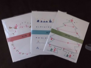 カードやミニレターでは物足りないという方、今年はプレゼントはないけど言葉を贈りたいという方におすすめのたっぷりかけるサイズのレターセットです。クリスマスレターセットは便箋と同じ柄のラベルシートが付いていて、それをはさみで切って宛名を書いてのりで貼る…というほんのちょっとだけ手間をかけて仕上げるレターです。ハンコのレターセットはうすい素材の和紙にハンコを押したような風合いのレターです。おめでたいこと、うれしいことがあったときはもちろん、少し気が早いですが2014年最初のお手紙を書くときに使ってみてはいかがでしょうか。封をとじるシールは付いていないのですが、同じ和紙素材の富士山しーるならぴったり合うと思います。