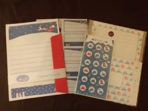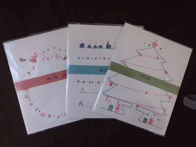こちらは遊び箋 ¥315 やさしい手触りの和紙にサンタクロースや冬の景色やツリーが一面に描かれているのですが、斜めに描かれたツリーの飾りや雪の上を走るうさぎの足跡が罫線になっていてとても遊び心のあるレターになっています。