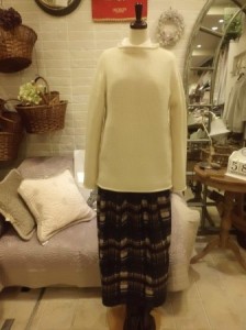 贅沢な総刺繍が素敵なスカートです。タートルネックを合わせて