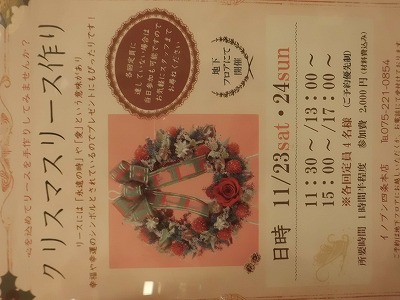 『クリスマスリース作り』のイベントについてお話したいと思います♪