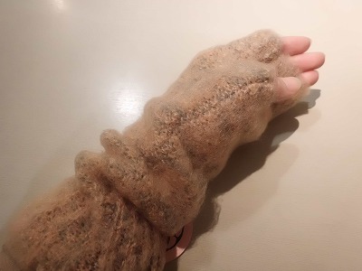もこもこ素材が気持ちいい、長めのアームウォーマー。