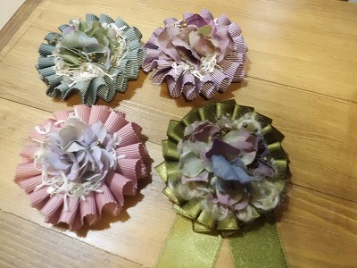 今回は、リボンや造花を使ったロゼッタを講師の方を招いて開催致します*