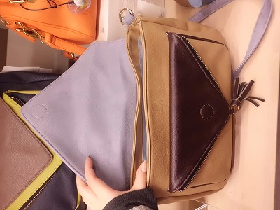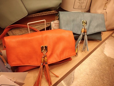 うまくポケットの色を使ったタッセル付のショルダーです