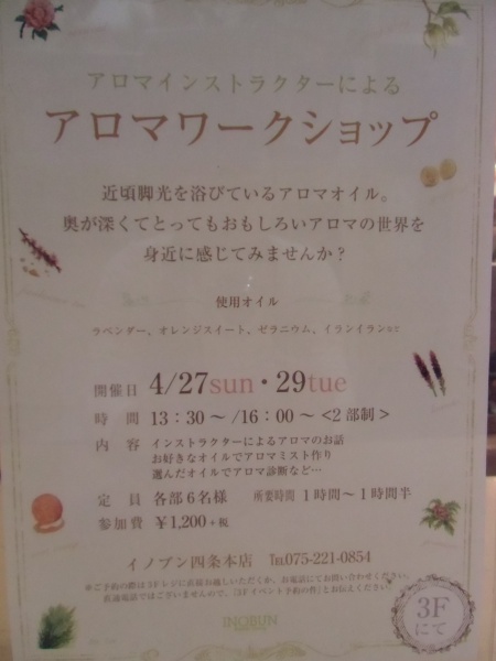 4月27日と29日の2日間で行われたアロマワークショップです。