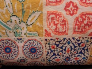 実は実際に建築物の壁画(タイル)を写真に撮ってそれを転写したプリント生地になっています。