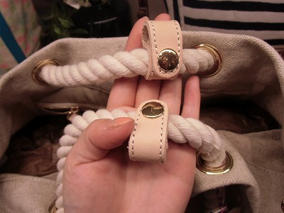 縫いとめられている革部分とこの金ボタンでアクセントになります♪
