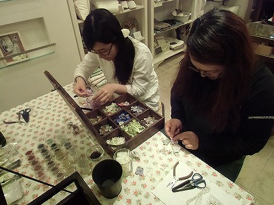 色とりどりのお花やコットンパールがあってみなさん悩まれていました。