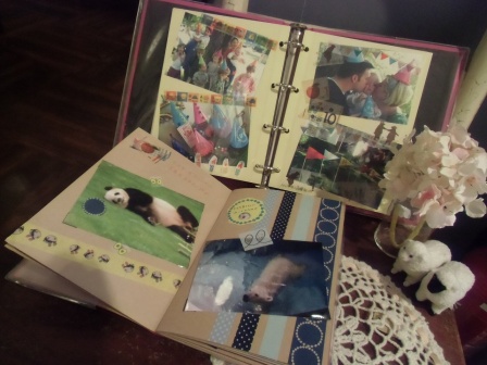 こちらは、リングタイプのスクラップノートです。大きめのタイプなので、大きい写真にも対応しています。