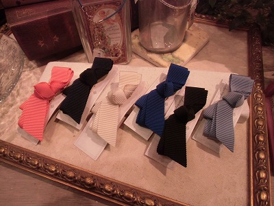 リボンですが片方だけ輪になっているデザインで甘すぎないのでさり気なくシンプルな感じでお使いいただけます。