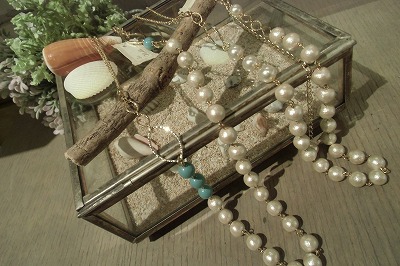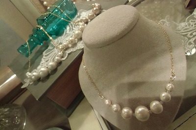 それはさておき。只今1Fでは、コットンパールや天然石を使った大人かわいいアクセサリーが魅力のNoble展を開催しております。