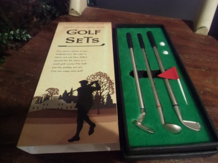 パッケージを裏返しにしてもらうとゴルフコースになり、ピンフラグを立てて遊べるゴルフペンです。
