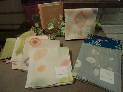 こちらは水彩画のデザインをもとに作られたはんかちです。