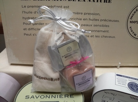 南フランスから届いたお肌の健康を守るぜいたく石けん、サヴォニエールのソープ、タオル、泡立てネットが入ったイノブンオリジナルキットです。