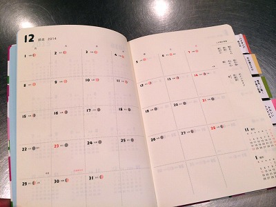 そして、マンスリースケジュールの後に、たくさんの日記が書けるように、方眼と無地のスペースをたくさんとっています。