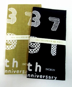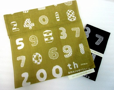 イノブンの200thを入れたデザインの手ぬぐいは、もっとお家に使いやすく、またカラーも藍色とからし色の2色に増えて展開です。
