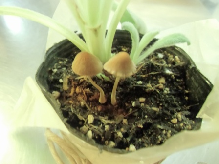 地下フロアにて、販売している、ハーブの苗の一部にかわいらしいきのこ。