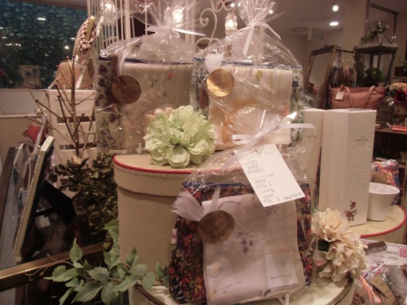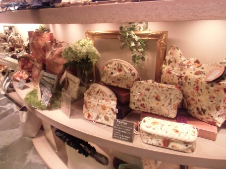 アクセサリーの売り場にある、リバティのハンカチ(500~)とポーチとでのギフトは大変人気があります。