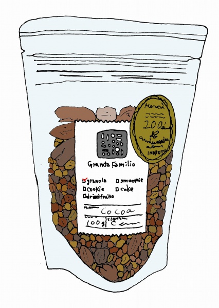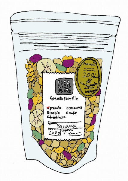 大阪・中崎町のグラノーラ専門店、ラ・グランダ・ファミリオさんに、イノブンの200周年記念に、オリジナルレシピ「きなこくるみ」と、イノブン限定サイズで作っていただいたグラノーラ。今日はラインナップが増えたので、再度ご紹介します。オーガニックな素材を中心に、化学調味料、合成甘味料、白砂糖を使用せず、誰もが安心して毎日食せる美味しさと楽しさ溢れるグラノーラです。
