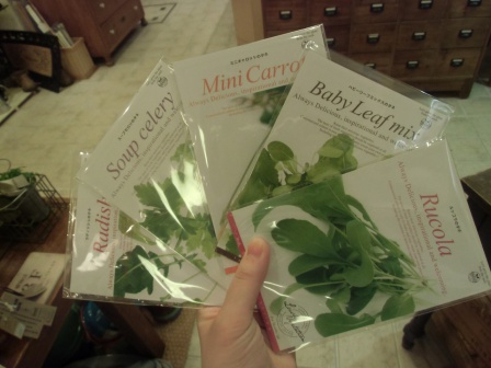 左からラディッシュ、スープセロリ、ミニキャロット、