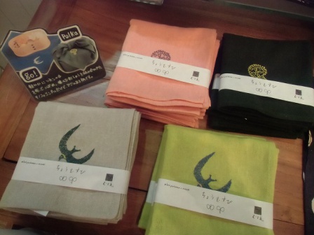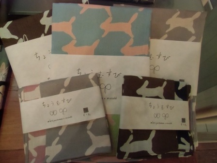 以前からお馴染みの蝶の模様のふろしきはもちろん、去年追加された柄も一緒にならんでいます。
