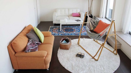 アウトドアはもちろん、このように お部屋で楽しむハンモックもおすすめです。